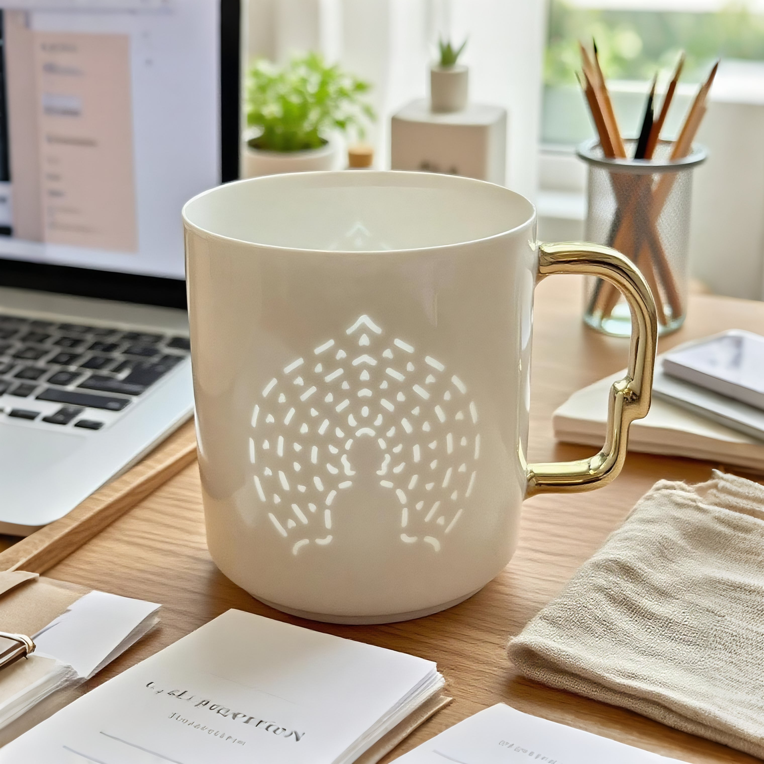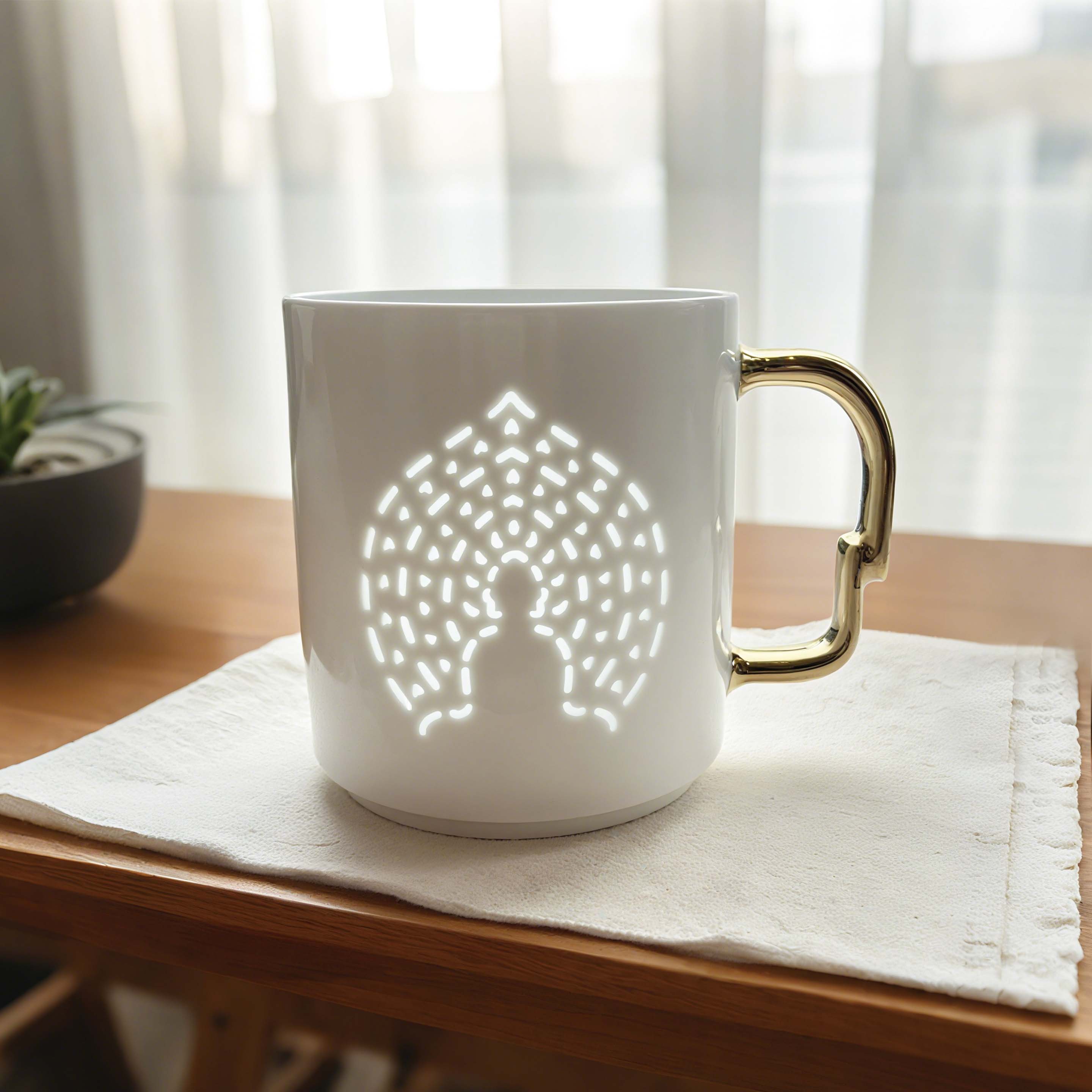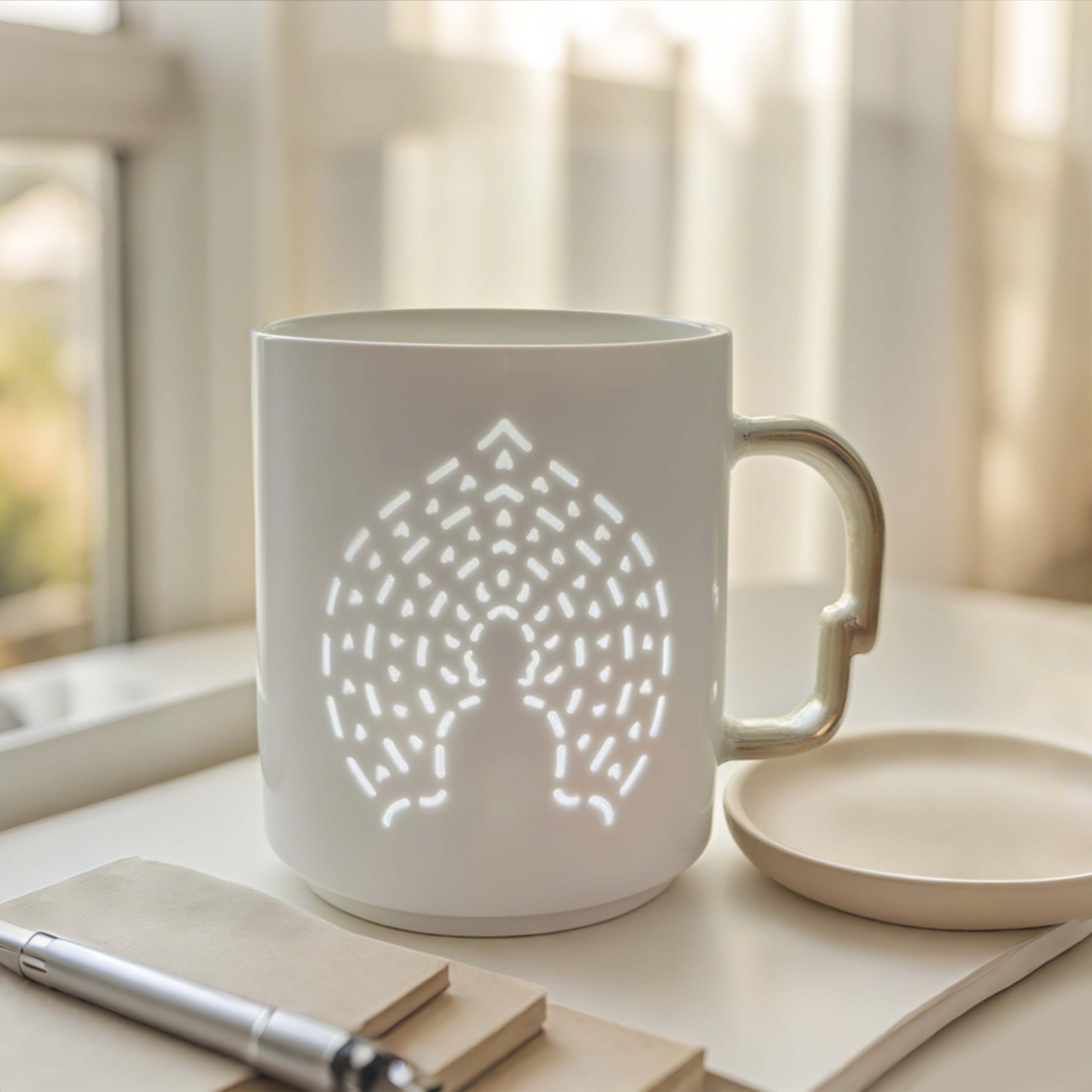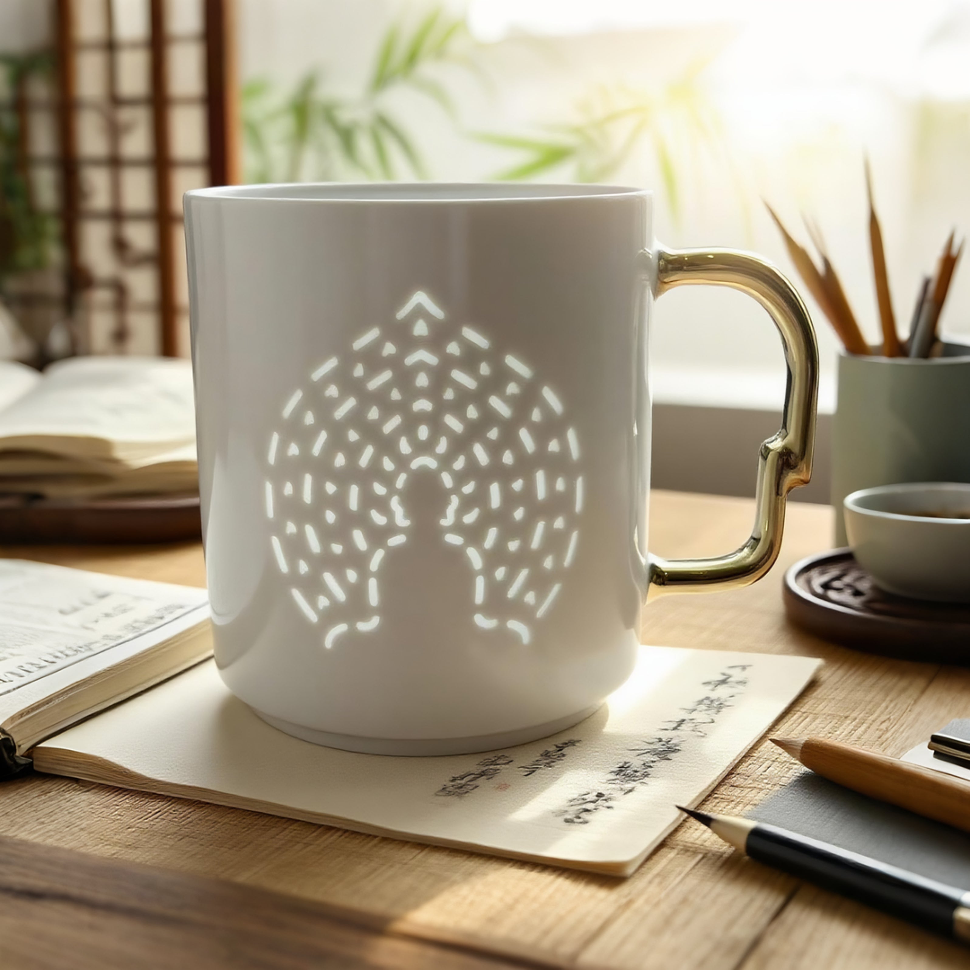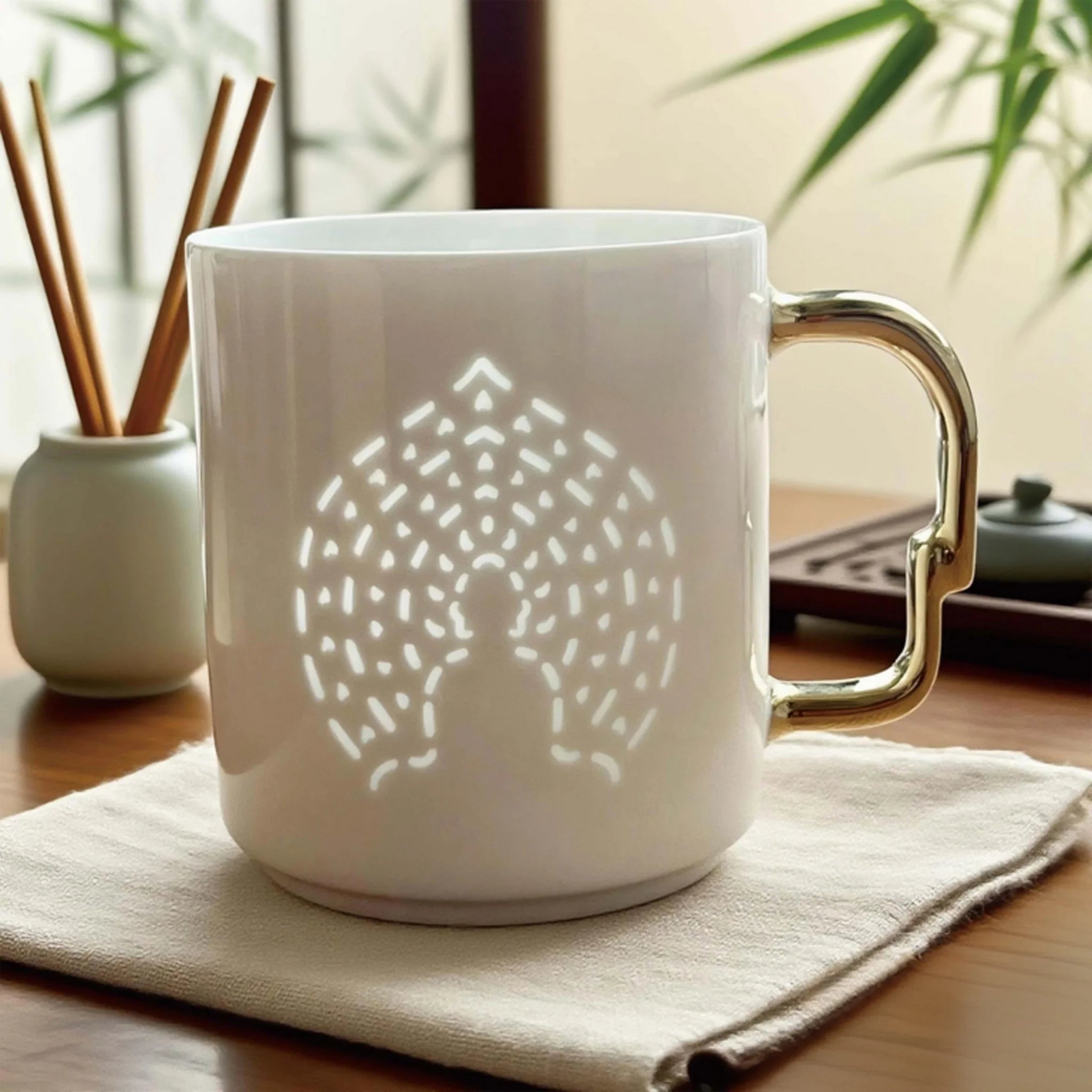 佛光杯灵感来自敦煌第259窟北壁的“禅定佛”,那抹1500年前的神秘微笑,被尊为“东方的蒙娜丽莎”。 佛背上的每一点玲珑,都是一簇跳动的金焰,替你点亮敦煌的佛光,照稳前路。